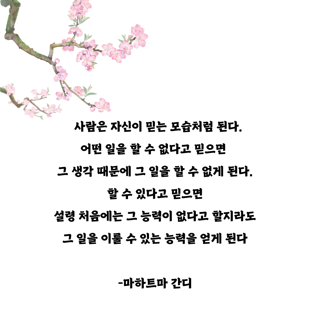 긍정적인 사람이 되길 소망했고, 간절히 원하면 이루어진다고 믿었습니다.